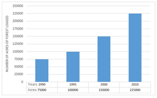 [IELTS Bar Graph: The bar graph below shows the area of forest logged in Southwest region and the table presents the number of forest-dwelling species in the same region.]
