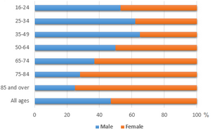 [IELTS Bar Graph: The bar chart below shows the proportions of English men and women of different ages who were living alone in 2011. The pie chart compares the numbers of bedrooms in these one-person households.]