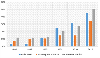 [IELTS Bar Graph: The chart below shows the percentage of female employees in three job sectors in Greece from 1990 to 2015.]