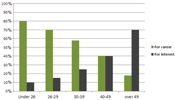 [IELTS Bar Graph: The chart below shows the main reasons for university education among people of different age groups, based on a survey conducted in 2008, and the percentages of students who got support from their employers in this year.]