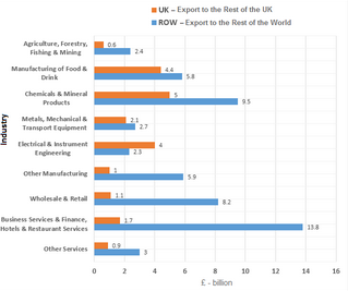 [IELTS Bar Graph: The bar chart below shows Scotland’s exports to the rest of the UK and the rest of the world for the year 2014.]