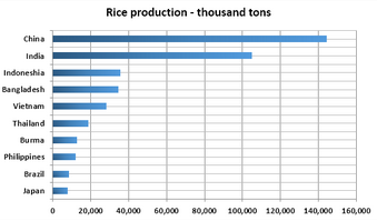 [IELTS Bar Graph: The bar chart below provides information about the top ten rice producing countries in the world in 2015.]