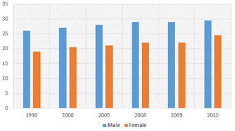 [IELTS Bar Graph: The graph below shows the percentages of male and female US citizens who never married.]