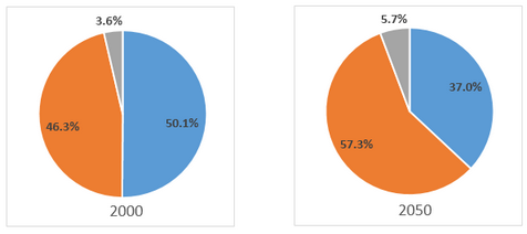 The charts below give Information on the ages of the populations of Yemen and Italy In 2000 and projections for 2050.
