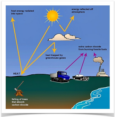 The following diagram shows how greenhouse gases trap energy from the Sun. Write a report for a university lecturer describing the information shown in the diagram.