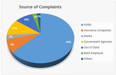 The graphs indicate the source of complaints about the Bank of America and the amount of time it takes to have the complaints resolved.