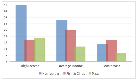 The chart below shows the amount of money per week spent on fast foods in Britain. The graph shows the trends in consumption of fast foods.