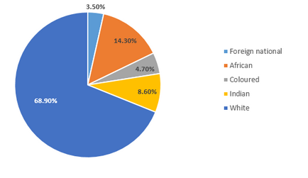 The charts below show the workforce profile at the top management jobs by ethnicity and race in South Africa based on a 2015/16 report.