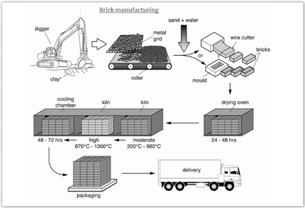 The diagram below shows the process by which bricks are manufactured for the building industry.