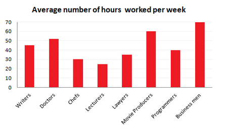 The graphs show figures relating to hours worked and stress levels amongst professionals in eight groups.