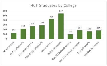 The graphs show enrolment in different colleges in the Higher Colleges of Technology in 1999.