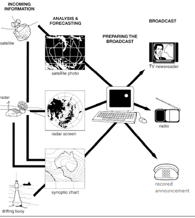 The diagram below shows how the Australian Bureau of Meteorology collects up-to-the-minute information on the weather in order to produce reliable forecasts.