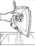 Explanation: This picture outlines that the iron is placed atop a water sink and the extra water is being released from the iron reservoir. 'Paragraph A Filling the reservoir' (instruction A) talks about emptying the reservoir after use. However, 'paragraph F Auto-clean' (instruction F) creates confusion as it also talks about holding the iron over the sink and continuing the process until the reservoir is empty. But if you look closely, you will notice that ‘instruction F’ asks to turn the stream control to Auto-clean and mentions that any calcium deposits will be washed out by the steam. It is, in no way, suggests that water from the reservoir would drop. Rather it suggests that auto-clean mode will clean the calcium deposits with the stream.