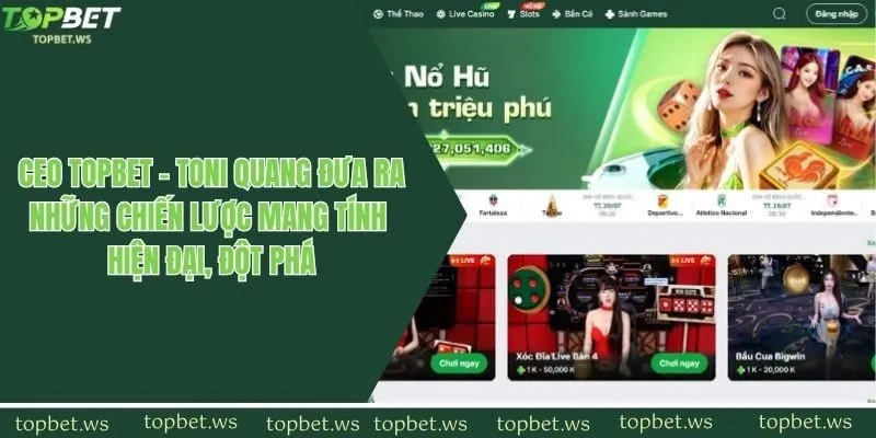 Dưới sự dẫn dắt của CEO Topbet Toni Quang, Topbet không ngừng hoàn thiện từng khía cạnh, từ giao diện, nội dung cho đến nền tảng công nghệ.