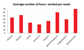 [Bar Graph Question: The graphs show figures relating to hours worked and stress levels amongst professionals in eight groups.]