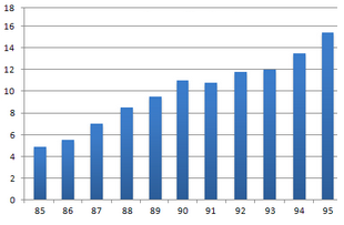 [Bar Graph Question: The charts below show the number of Japanese tourists traveling abroad between 1985 and 1995 and Australia's share of the Japanese tourist market.]