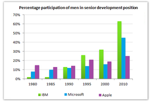[Bar Graph Question: The bar chart below shows the percentage participation of men in senior development in three companies between 1980 and the year 2010.]