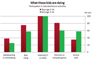 [Bar Graph Question: The graph below gives information about the preferred leisure activities of Australian children.]