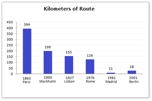 [Bar Graph Question: The bar charts below give information about the railway system in six cities in Europe. ]