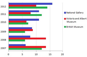 [Bar Graph Question: The bar chart shows the number of visitors to three London Museums between 2007 and 2012.]
