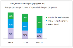 [IELTS Bar Graph: The chart below shows information about the challenges people face when they go to live in other countries.]