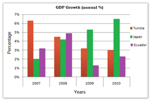 [IELTS Bar Graph: The chart below shows the GDP growth per year for three countries between 2007 and 2010.]