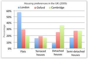 [IELTS Bar Graph: The following chart illustrates the results of a British survey taken in 2005 related to Housing preferences of UK people.]