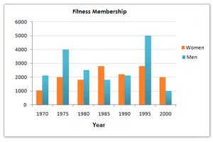 [IELTS Bar Graph: The chart below shows male and female fitness membership between 1970 and 2000 in Someland.]