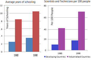 [IELTS Bar Graph: The charts below show the levels of participation in education and science in developing and industrialised countries in 1980 and 1990.]