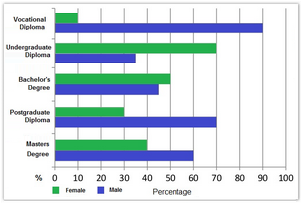 [IELTS Bar Graph: The chart below show the different levels of post-school qualifications in Australia and the proportion of men and women who held them in 1999.]