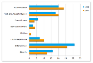 [IELTS Bar Graph: The chart shows student expenditure over a three-year period in the United Kingdom.]