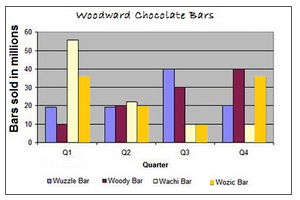 [IELTS Bar Graph: The graph below shows the quarterly sales figures of Woodward chocolate bars for 2010.]