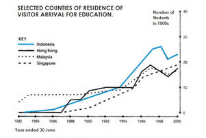 [Line Graph: The graph below shows four countries of residence of overseas students in Australia.]