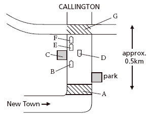Label the diagram/plan below. Write the correct letter, A–G, next to questions 8–10.