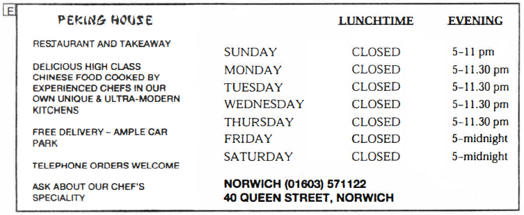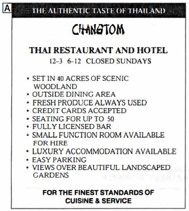 GT Reading Test 57 Section 1 - Restaurant advertisements & Activities