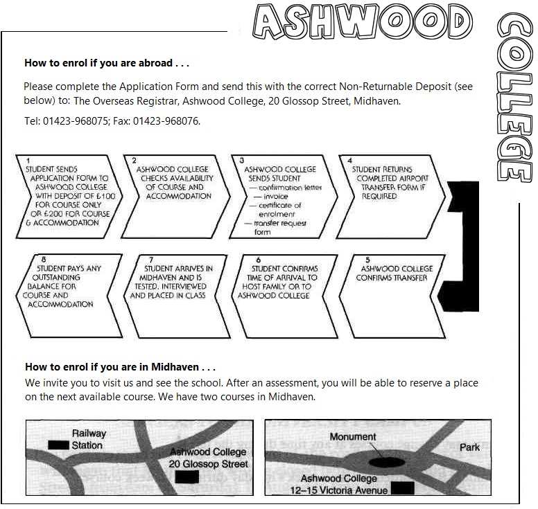 Ashwood College has two all-year centres and a summer centre in Midhaven. Before entry to the school, students must take an entry test to determine the level of class they enter. We cannot guarantee the time or location of a student's course although every attempt is made to place students in the centre and at the time of their choice.