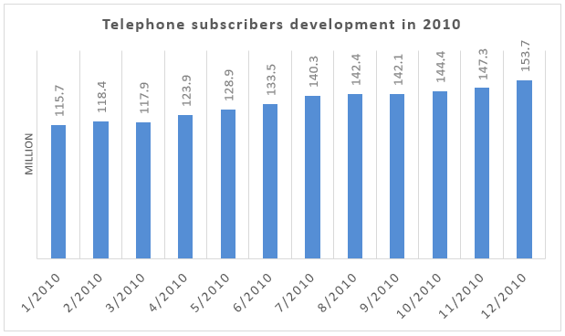 Overall, telephone users in Vietnam increased slowly but steadily in 2010, except for March and September. More specific information will be summarized below.